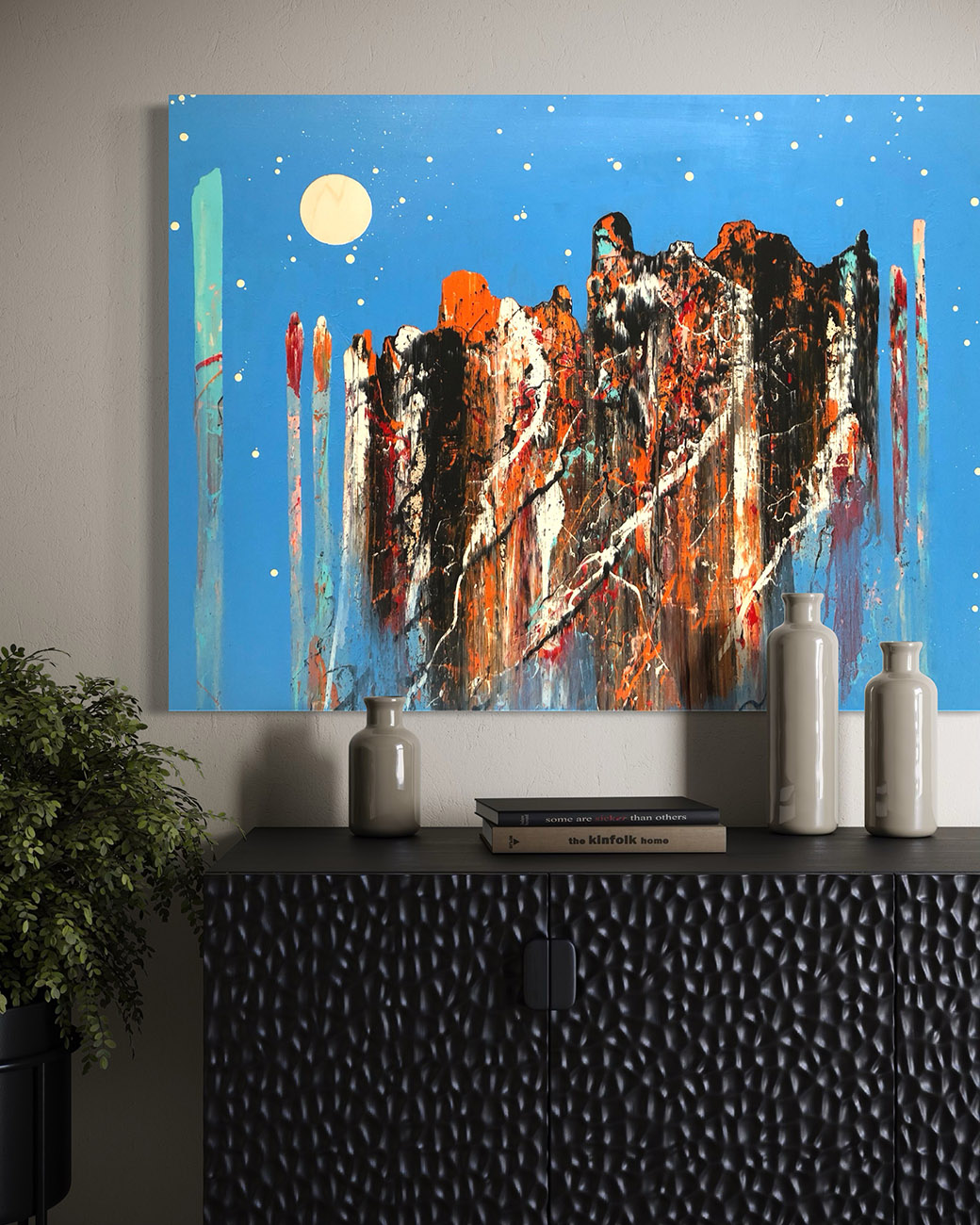 Drawing on the complexities of his suburban upbringing, Brooks rejects its cultural pull toward precision and perfection. He instead embraces a deliberate sense of “ordered chaos.” His work balances recognizable forms with loose, dripping veils of bold, intermingling color. There is an intentional release of control that mirrors his commitment to honoring imperfection and the unpredictable nature of the human experience. This tension between structure and spontaneity serves as a visual response to a world increasingly shaped by algorithmic ideals, reaffirming the beauty of what is raw, vulnerable, and deeply human.